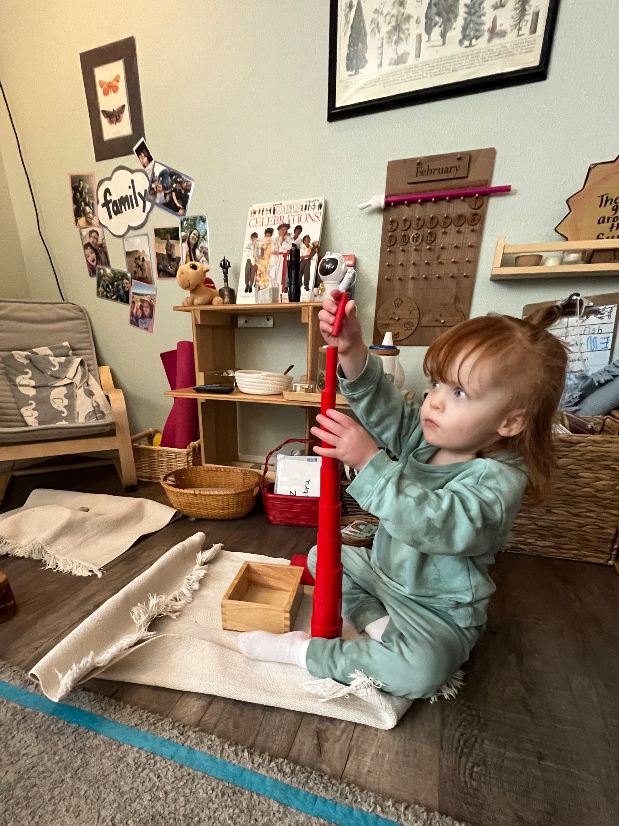 We have two classroom spaces broken into two age groups: 1 year - 3 years and 3 years - 6 years. Everything in our school is intentional, useful, beautiful and child sized. The classroom is intended to be an extension of the home, where the children can practice all of life’s lessons. Having a space with furniture that is their size creates a feeling of ownership over the space, a special feeling that it is just for them. This really helps establish a level of comfort for your child’s first schooling experience. For these reasons we chose a neighborhood home as our first location. This is really special for us because we love to have a smaller, tight knit ”first school” community.